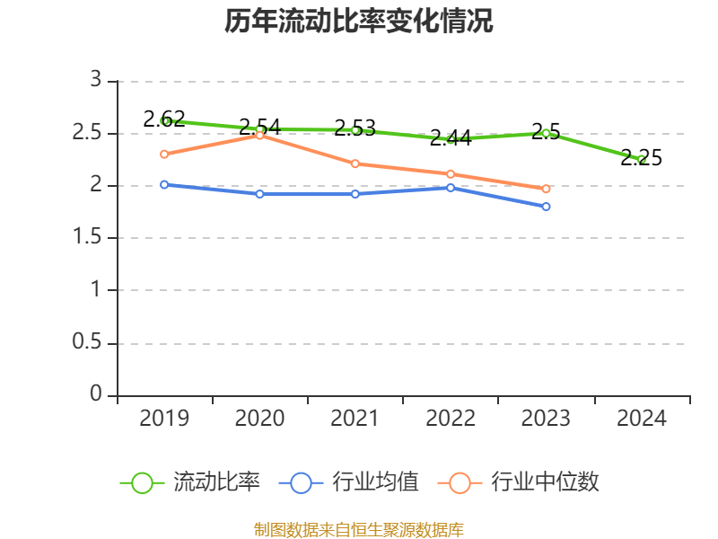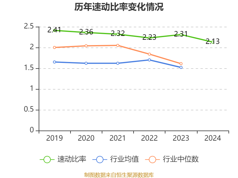 2024年,公司流动比率为2.25,速动比率为2.13。