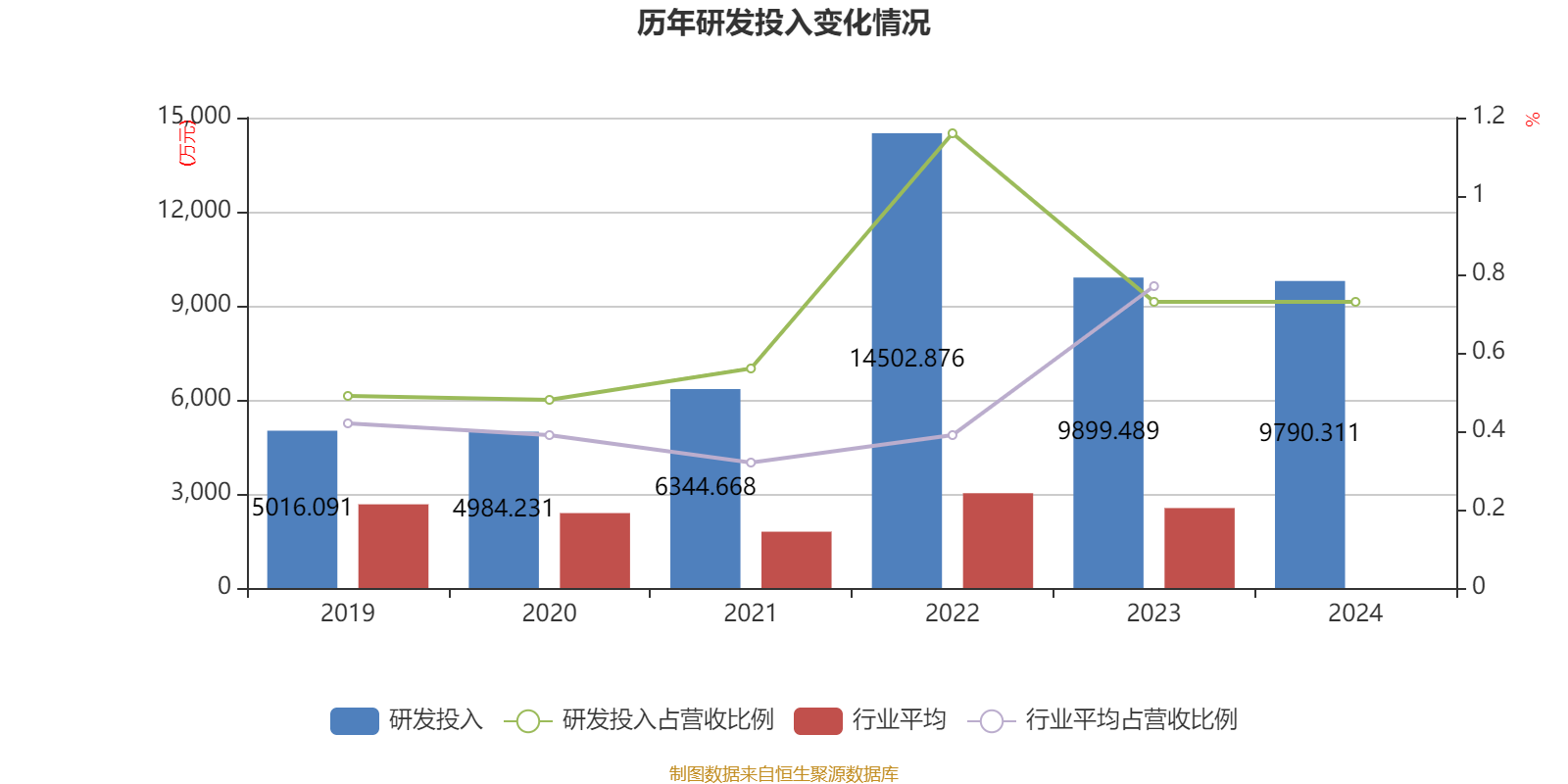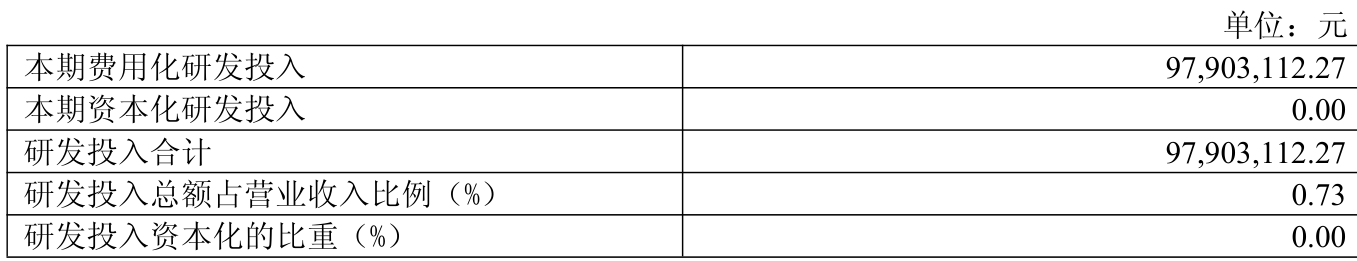 2024年全年,公司研发投入金额为9790.31万元,同比下降1.1%;研发投入占营业收入比例为0.73%,相比上年同期持平。此外,公司全年研发投入资本化率为0%。