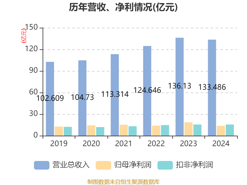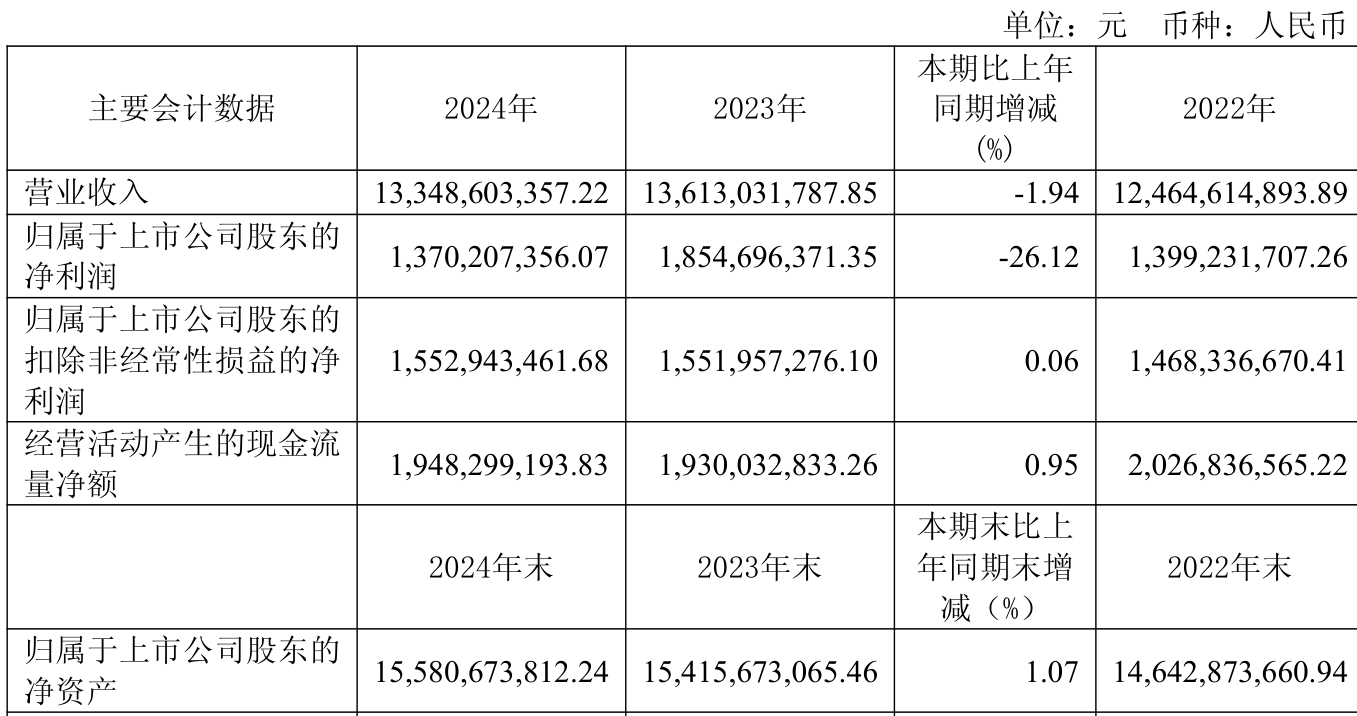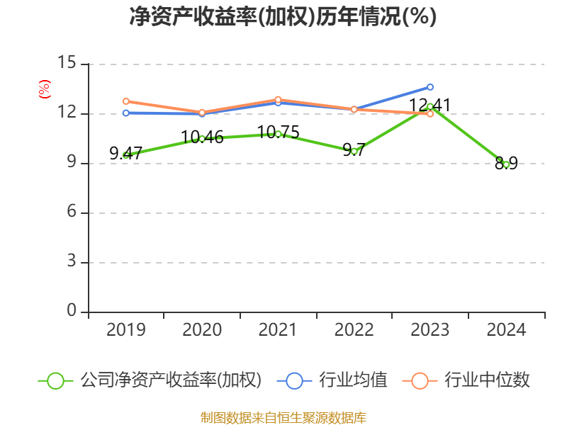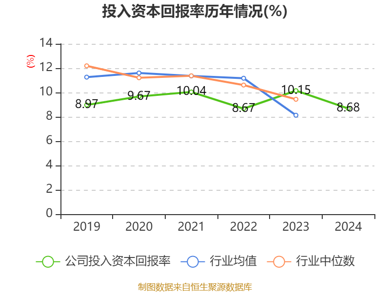 数据显示,2024年公司加权平均净资产收益率为8.9%,较上年同期下降3.51个百分点。公司2024年投入资本回报率为8.68%,较上年同期下降1.47个百分点。