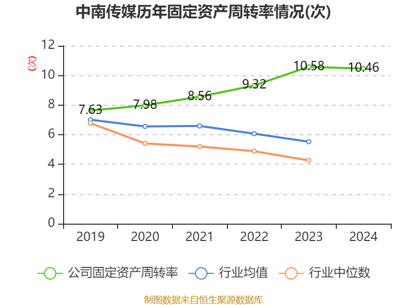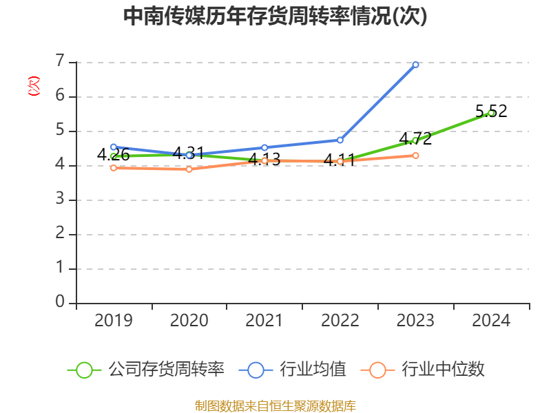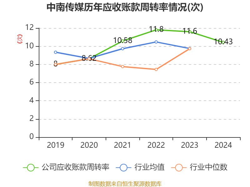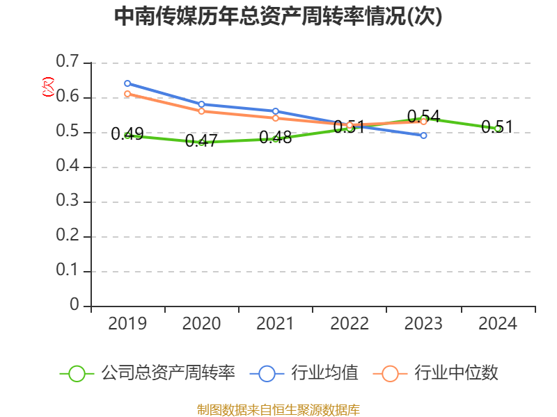 中证智能财讯中南传媒(601098)4月26日披露2024年年度报告。2024年,公司实现营业总收入133.49亿元,同比下降1.94%;归母净利润13.7亿元,同比下降26.12%;扣非净利润15.53亿元,同比增长0.06%;经营活动产生的现金流量净额为19.48亿元,同比增长0.95%;报告期内,中南传媒基本每股收益为0.76元,加权平均净资产收益率为8.90%。公司2024年度分配预案为:拟向全体股东每10股派现4.5元(含税)。